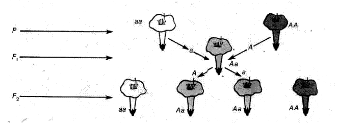 Рис. 1. Моногибридное скрещивание ночной красавицы