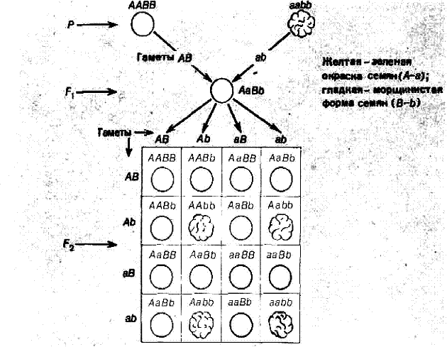 Рис. 2. Дигибридное скрещивание гороха