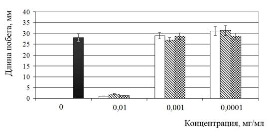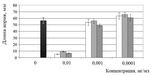 B. subtilis 49РН, 26Д и 11В в концентрации 0,01 мг/л является сильным ингибитором прорастания семян пшеницы.