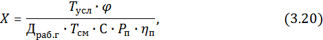 где Фш – годовой фонд времени штатного рабочего при односменной работе. Определяется аналогично годовому фонду времени технологически необходимого рабочего с учетом отпуска и невыходов по уважительной причине и составляет 1820 –для вредных условий работы и 2070 –для нормальных.