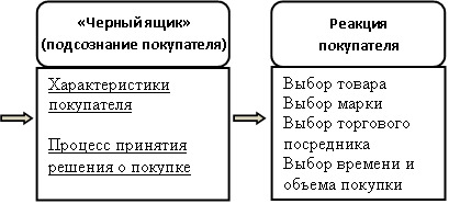 Маркетологи стремятся понять, каким образом в «черном ящике» потребителя происходит превращение стимулов в реакцию. «Черный ящик» условно можно разделить на две части: