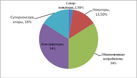 Рисунок 13: Сегментирование рынка по отношению потребителей к появлению нового товара