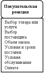 На рисунке 15 показана модель поведения покупателя товаров производственного назначения. В этой модели маркетинговые и другие стимулы влияют на предприятие-покупателя и вызывают некую реакцию покупателя. Как и при продаже потребительских товаров, здесь маркетинговые стимулы включают в себя "четыре Р". Остальные стимулы представляют собой ключевые факторы внешней среды — экономические, технологические, политические, культурные и фактор конкуренции. Под воздействием этих стимулов в компании возникает покупательская реакция, которая выражается в выборе товара или услуги, выборе поставщика, определении объема заказа, определении условий и сроков поставки и условий обслуживания. Чтобы разработать действенную маркетинговую стратегию, маркетолог должен хорошо понимать механизм преобразования стимулов в покупательскую реакцию.