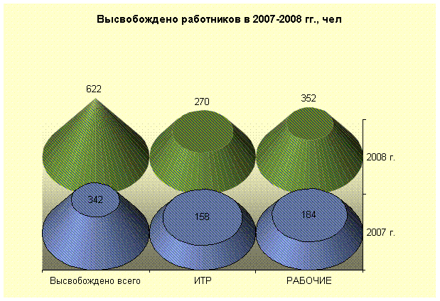 Согласно представленным спискам в службу занятости населения за январь-декабрь 2008 года численность граждан, уволенных в связи с сокращением, составила 622 чел., что на 280 чел. больше, чем в 2007 году. (см. Приложение 4).