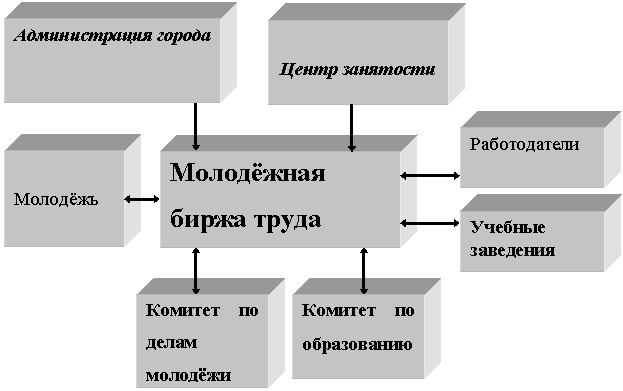Молодёжная биржа труда станет посреднической структурой между молодёжью, учебными заведениями и работодателями, она будет координировать их действия с помощью сбора, систематизации и предоставления информации.