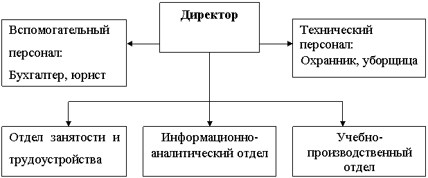 Для более эффективной реализации функций молодёжной биржи предполагается создать организационную структуру, представленную в приложении 7.