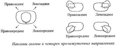 Повторите те же самые движения в промежуточных направлениях: левозаднем, правопереднем, левопереднем и правозаднем.