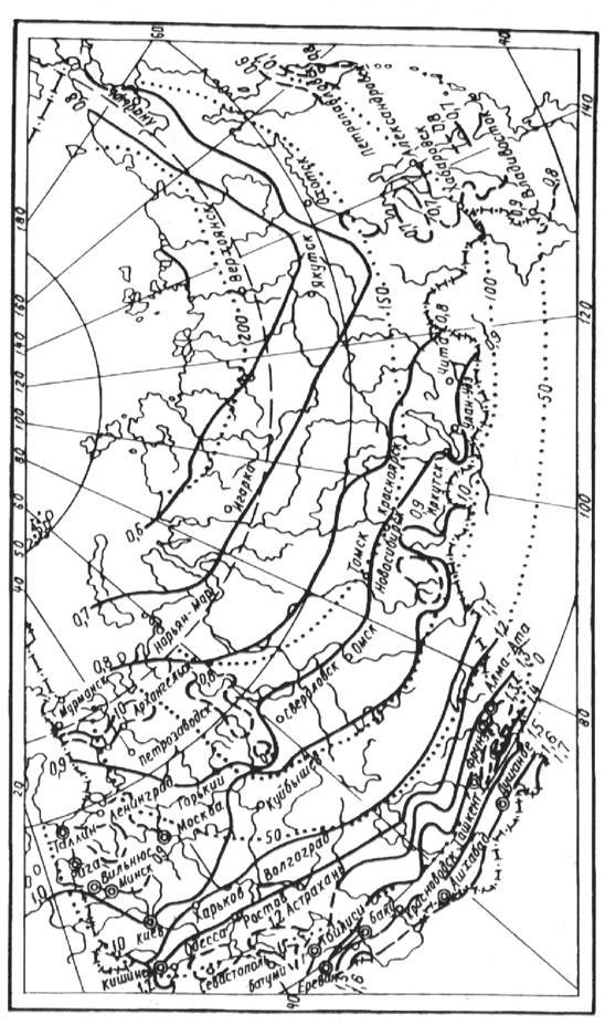 Черт.3. Климатические коэффициенты для определения величины нагрузки