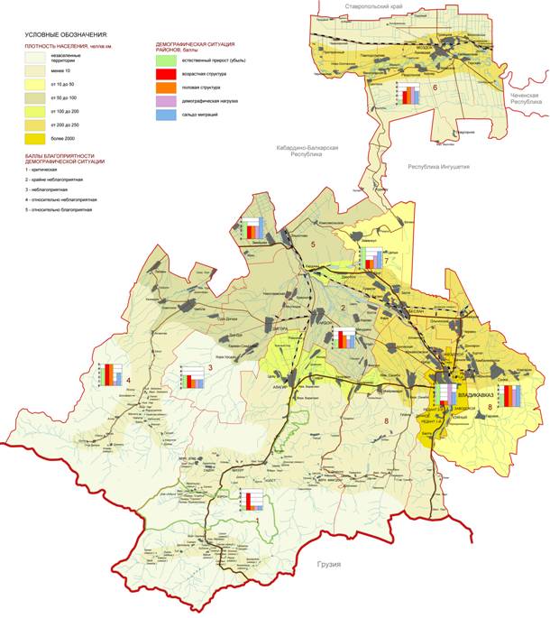 Республики Северная Осетия-Алания, в разрезе административных районов.