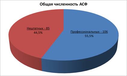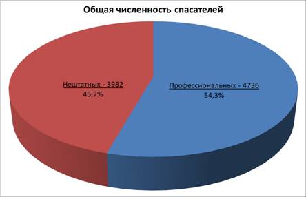 Рисунок 2 - Распределение общей численности аварийно-спасательных формирований на объектах химической промышленности по статусу (профессиональные и нештатные).