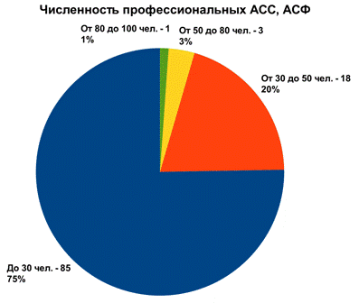 Наибольшее количество аварийно-спасательных формирований (67 из 89) имеют численность до 30 человек, на долю формирований с высокой численностью (более 80 человек) приходится 1 % (рис. 3)