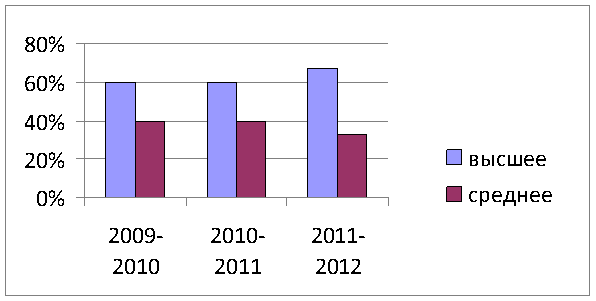 Образование учителей: высшее – 8 человек, среднее специальное – 4 человека.