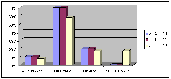 Из них 7 человек имеют 1 категорию – 58%, 2 чел. – высшую категорию – 17% и 1 чел. вторую категорию – 8%, 2- категорию не имеют – 17%.