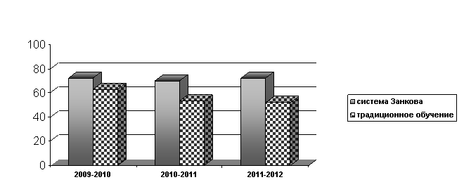 Классы, работающие по программе развивающего обучения, имеют, в основном, более высокий процент качества обученности учащихся, что свидетельствует о перспективности использования данной программы.