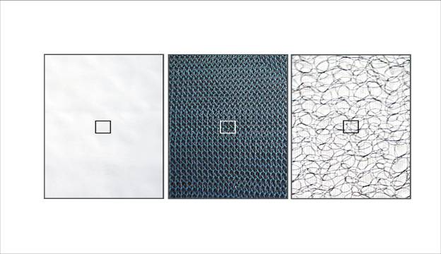 Контролем в экспериментальном исследовании служили современные имплантаты: пленчатый имплантат для герниопластики из политетрафторэтилена (PTFE) фирмы GoreTex и имплантат для герниопластики из полипрополена (пролен) фирмы Ethicon. Выбор данных материалов для контрольных исследований определялся тем, что они, с одной стороны, являются в настоящее время самыми распространенными имплантатами для герниопластики у нас в стране и за рубежом, и имеют, с другой стороны, отличные от никелида титана параметры конструкции имплантационного устройства. Так, соотношение удельной площади поверхности исследуемых имплантатов PTFE, пролена и никелида титана составило 1 : 0,07 : 0,03 (рис. 1).