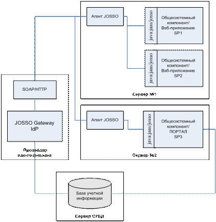 - реализация механизмов единого входа (SSO) пользователя на узле, авторизации пользователя, федеративного перехода пользователя на любой узел системы.