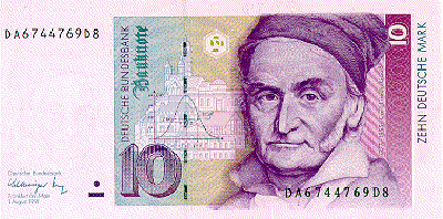 Карл Фредерик Гаусс (10 марок, Германия, 1993).