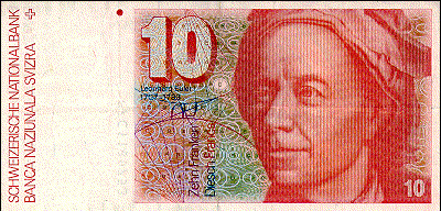 Леонард Эйлер - 10 франков. Швейцарская купюра гг.