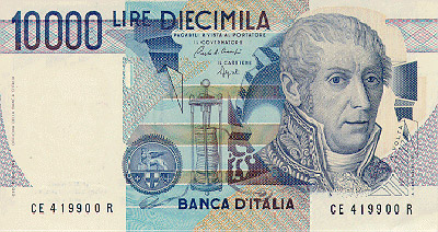 Алессандро Вольта - 10000 лир, Италия, 1984.