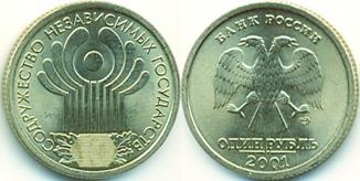 1 рубль Содружество Независимых Государств (СНГ)2001 года.