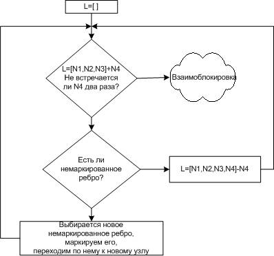 2Текущий узел добавляем вконец списка L и проверяем количество появления узла в списке. Если он встречается два раза, значит цикл и взаимоблокировка.