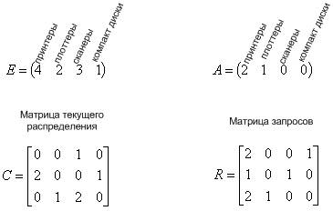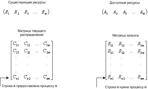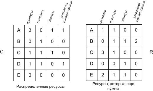 С - матрица текущего распределения (какому процессу, какие ресурсы принадлежат)