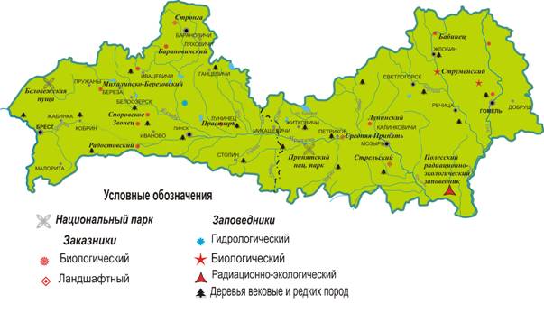 Рис. 1. Категории особо охраняемых природных территорий Белорусского Полесья как объектов туризма