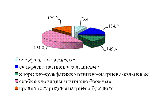 Рис. 4. Запасы (м3) и типы подземных вод