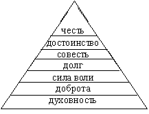 На доске нарисован «скелет» пирамиды, куда записываются постепенно, по мере обсуждения, все нравственные качества.