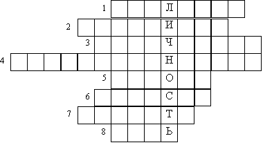 Классный руководитель. что же такое личность? «Личность» – очень многозначное слово. В этом понятии выражается самое главное, что присуще данному человеку, – совокупность его внутренних свойств как существа общественного, таких, как черты разума, души, поведения: что любит, ценит, как относится к другим, умеет ли твёрдо держать своё слово, самостоятелен он или податлив чужой воле. Человек и личность – это не синонимы. Человек ещё не может быть личностью (например, новорождённый), но личность – это всегда человек, и личностью не может быть никто, кроме человека. Личность неповторима, как и человек. Личность – это человек как носитель сознания. Личностью не рождаются, а становятся в определённых общественных условиях. В зависимости от многих жизненных обстоятельств человек может стать цельной, уважаемой в обществе личностью, а может ею и не стать. Какими же качествами должен обладать человек, которого можно назвать цельной, гармоничной личностью? На этот вопрос вам поможет ответить литературный кроссворд.