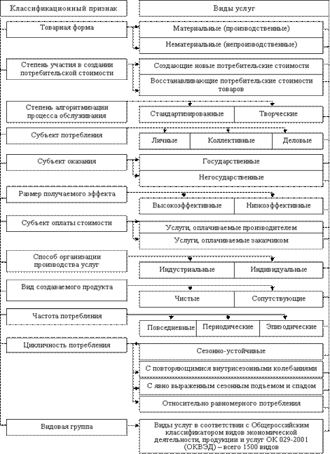 - конкретизирован видовой и субъектный состав сферы услуг, систематизированы виды ее предприятий по выделенным классификационным признакам, расширено представление о роли сферы услуг в экономике, обусловленное ее влиянием на качество жизни населения, усилением технологической и воспроизводственной взаимозависимости сферы услуг и материального производства;