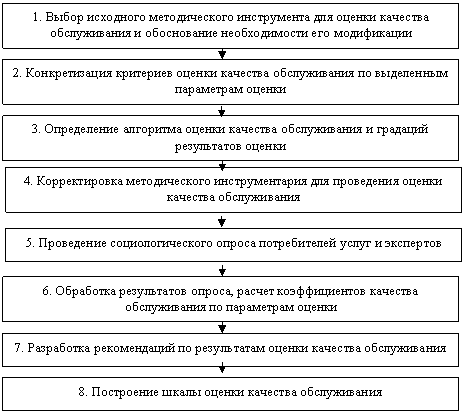 Методика оценки качества обслуживания обеспечивает возможность проведения потребителями сравнительной оценки собственных ожиданий и восприятий качества с учетом мнений экспертов на основе построенной шкалы градаций результатов оценки.
