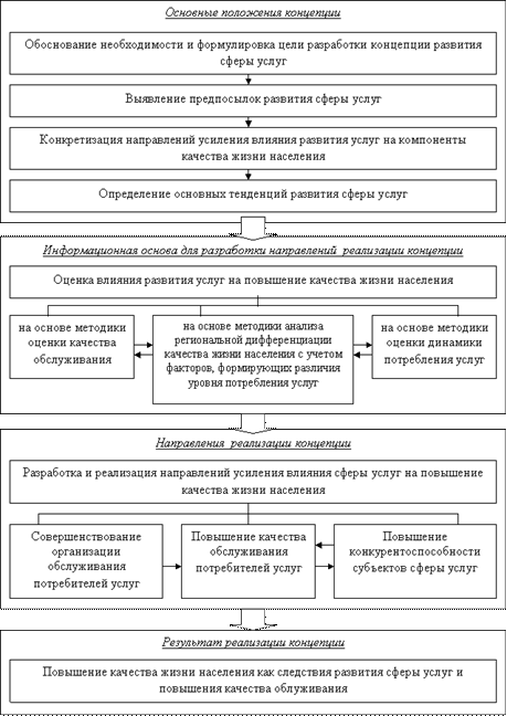 Концепция развития сферы услуг способствует формированию системного видения стратегических перспектив рыночного развития этой сферы с позиций усиления ее влияния на качество жизни населения.
