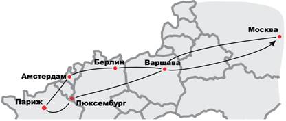 Москва – Варшава – Берлин – Амстердам – Париж (3 дня) – Люксембург – Варшава – Москва