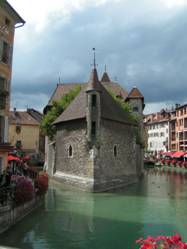 В Анси есть очень интересная бывшая средневековая тюрьма. Она располагается на острове одного из каналов. Его треугольная форма напоминает корабль в камне, который рассекает воду более 8 веков. Он был господским домом, потом тюрьмой, а в итоге стал музеем. Это излюбленное место фотографов.