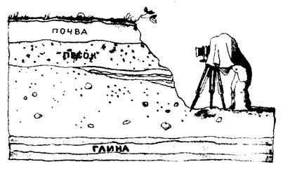 Теперь мы можем начать разговор о пути движения дождевой капли. Представим себе лежащий на поверхности слой песка. Прошел дождь. Капельки быстро просочились вглубь по крупным порам и, увлекаемые силой тяжести, стали опускаться все ниже и ниже. Но вот пласт песка кончился.