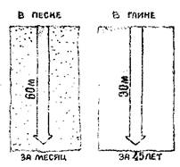 Конечно, движение воды через глину происходит, но оно в тысячи и десятки тысяч раз медленнее, чем в тех же песках. Даже движение улитки по сравнению с водой в глине покажется «космическим». За сутки в такой породе вода при благоприятных условиях может просочиться на 0,5 — 1,5 мм. Чтобы пройти путь в глине в 1 м, воде потребуются многие месяцы и даже годы (рис. 16).