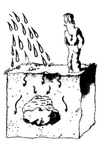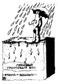 Действительно, почему под землей появляется вода? Я догадываюсь, что читатель пожимает плечами и легко отвечает на этот вопрос. Идет дождь и вода просачивается в землю, попадая таким образом в колодцы. А может быть она проникает в землю из ближайшей реки или озера?