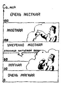 Рис. 27. В зависимости от содержания иона кальция (или маг ния) воды могут быть жестки! и мягкие, пригодные и не при годные для питья