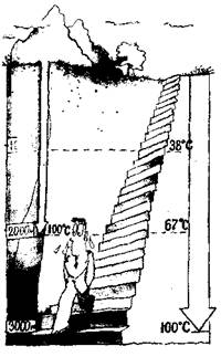 Рис. 28. Так изменяется температура пород с увеличением глубины проникновения в землю