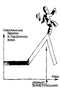 Рис. 43. Перед землетрясением растет содержание радона в подземных водах