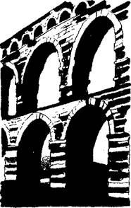Достаточно обширные сведения об использовании подземных вод для снабжения водой были накоплены в древнем Риме. Римляне умели не только строить колодцы, но придавали большое значение подземным водам. Они использовали выходящие на поверхность источники подземных вод для водоснабжения городов. При этом подавали воду для снабжения города по специальному гигантскому сооружению-акведуку. Последние выглядели особенно величественно при пересечении долин рек. Такие акведуки были и чудом античной техники, и ее ошибкой. Дело в том, что римские архитекторы не использовали естественного уклона местности, а давали уклон лотку акведука за счет изменения его высоты. Это приводило к нерациональной затрате материалов и сил для их строительства. При императоре Августе был построен акведук, подающий ключевую воду в тогдашнюю столицу Ним (рис. 45).