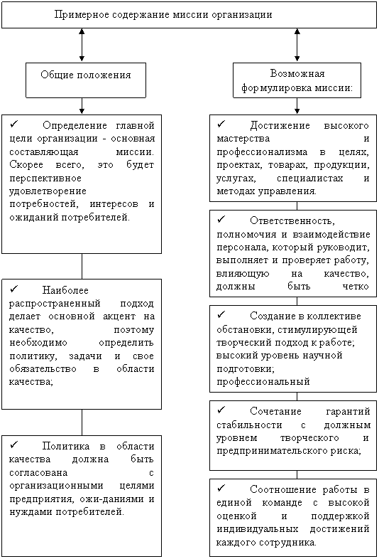 Основой целевой функции является миссия предприятия, выражающая философию и смысл его существования. Четкое определение миссии и целей является первым и самым важным шагом на пути к корпоративному планированию и определяет всю дальнейшую работу по систематической разработке планов компании. Структуру миссии составляют: правовой статус предприятия; статус предприятия на четко очерченном сегменте рынка; принципы его работы; важнейшие характеристики организации (Рис.9).