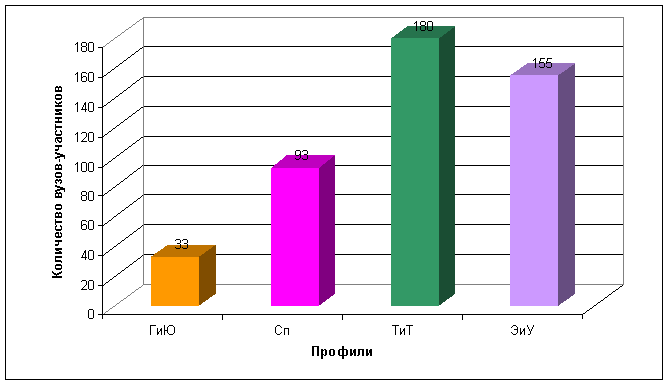 Распределение вузов-участников Интернет-олимпиады по профилям