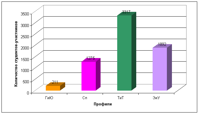 В разделе приводятся количественные показатели участия в Интернет-олимпиаде как по вузам, так и по студентам по выделенным профилям.