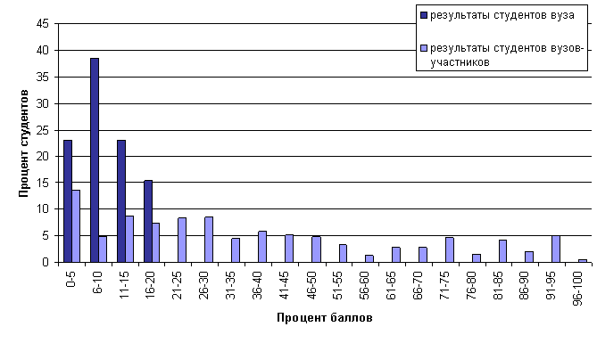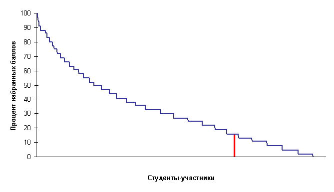 · диаграмма ранжирования результатов студентов вузов-участников по проценту набранных баллов,