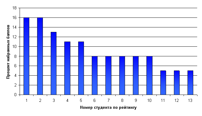 · диаграмма ранжирования студентов вуза по проценту набранных баллов;