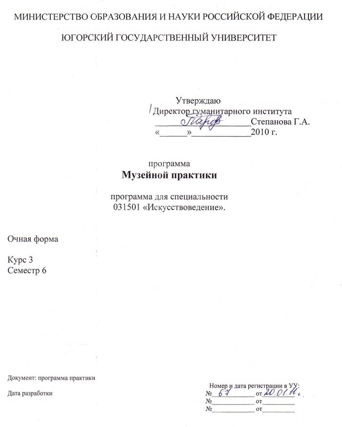 Прохождение музейной практики является важным этапом в системе ВУЗовского образования. Она выполняет роль связующего звена между общепрофессиональными теоретическими дисциплинами федерального и национально-регионального (вузовского) компонента и практическими занятиями в музеях будущего специалиста-искусствоведа.