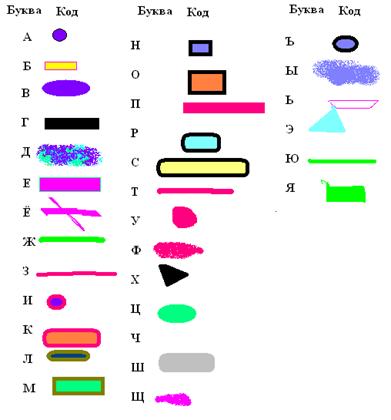 Прошу ребят для каждой буквы придумать и нарисовать какой-нибудь значок или небольшое изображение, а после этого, закодировать несколько основных понятий информатики.