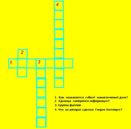 I. Мотивация. На одном из уроков, я говорю: «Ребята, у меня к вам есть предложение. Давайте создадим с вами сборник загадок, кроссвордов, ребусов по информатике, напечатаем его, а затем ваш сборник будет использоваться на уроках информатики в качестве учебного пособия. Причем, фамилии авторов в нем будут обязательно указаны». (Обычно это вызывает интерес, и ученики с удовольствием соглашаются).